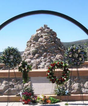 The STONE CAIRN was topped with a cedar cross and a small granite marker was set