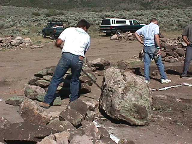31.jpg (43807 bytes) 19. Gathering the last of the ravine rocks.