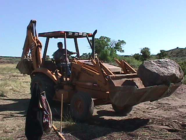 5.jpg (49255 bytes) 3.  Backhoe operator James Poet, retrieves the first of hundreds of rocks that will be needed to complete the
