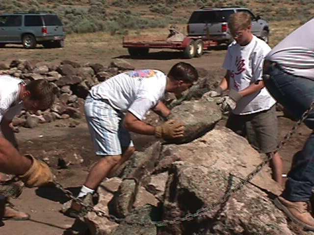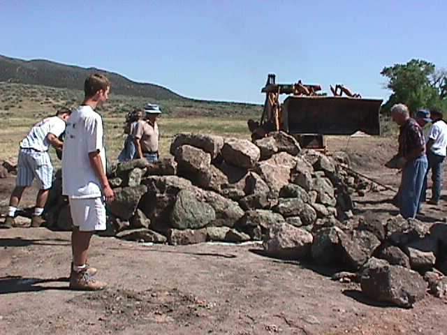 2.jpg (40029 bytes) 2. 15 volunteers from the Bloomington Stake before the start of 7 hours of tiring rock lifting.