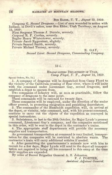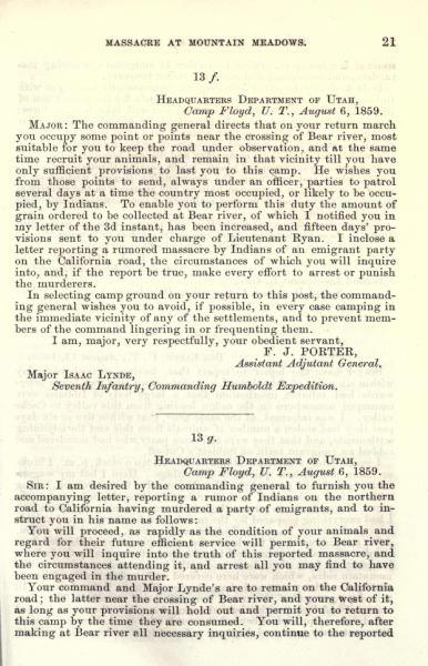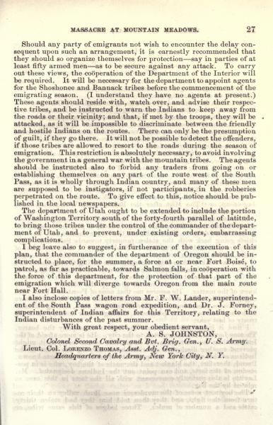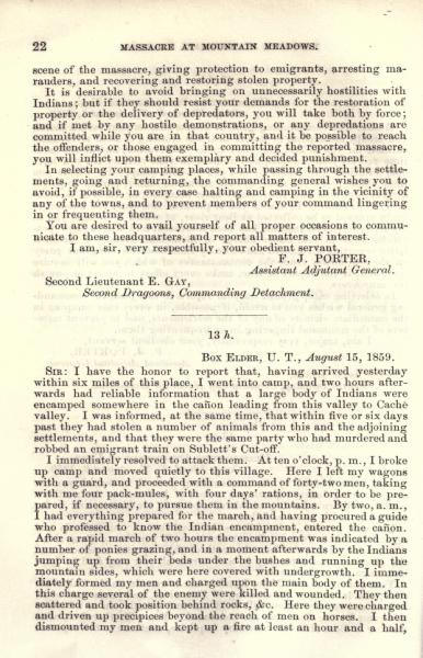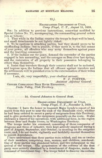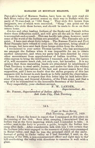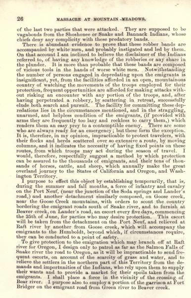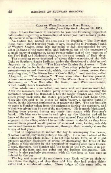 Message of the President of the United States: In compliance with a resolution of the Senate, information in relation to the massacre at Mountain Meadows, and other massacres in Utah Territory (May 1860)